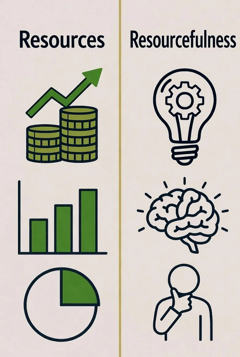 The larger the internal pool of resourcefulness, the better equipped we are to navigate through difficult periods in human history, such as the one we are currently living in. The magic of resourcefulness lies in leveraging your inner resourcefulness to access the resources you need to achieve your goals. The most significant limitations of humankind lie within our own minds.